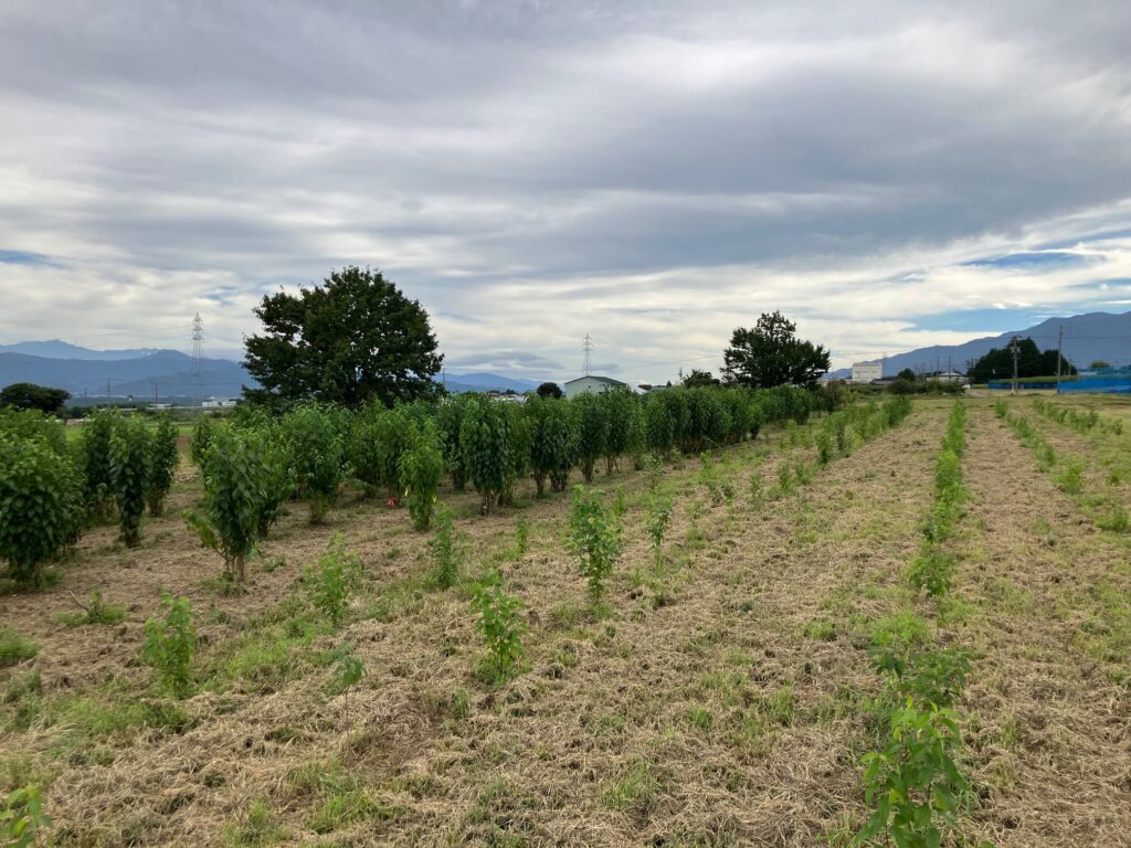 切り戻しから四年目を迎えた杜仲の畑。